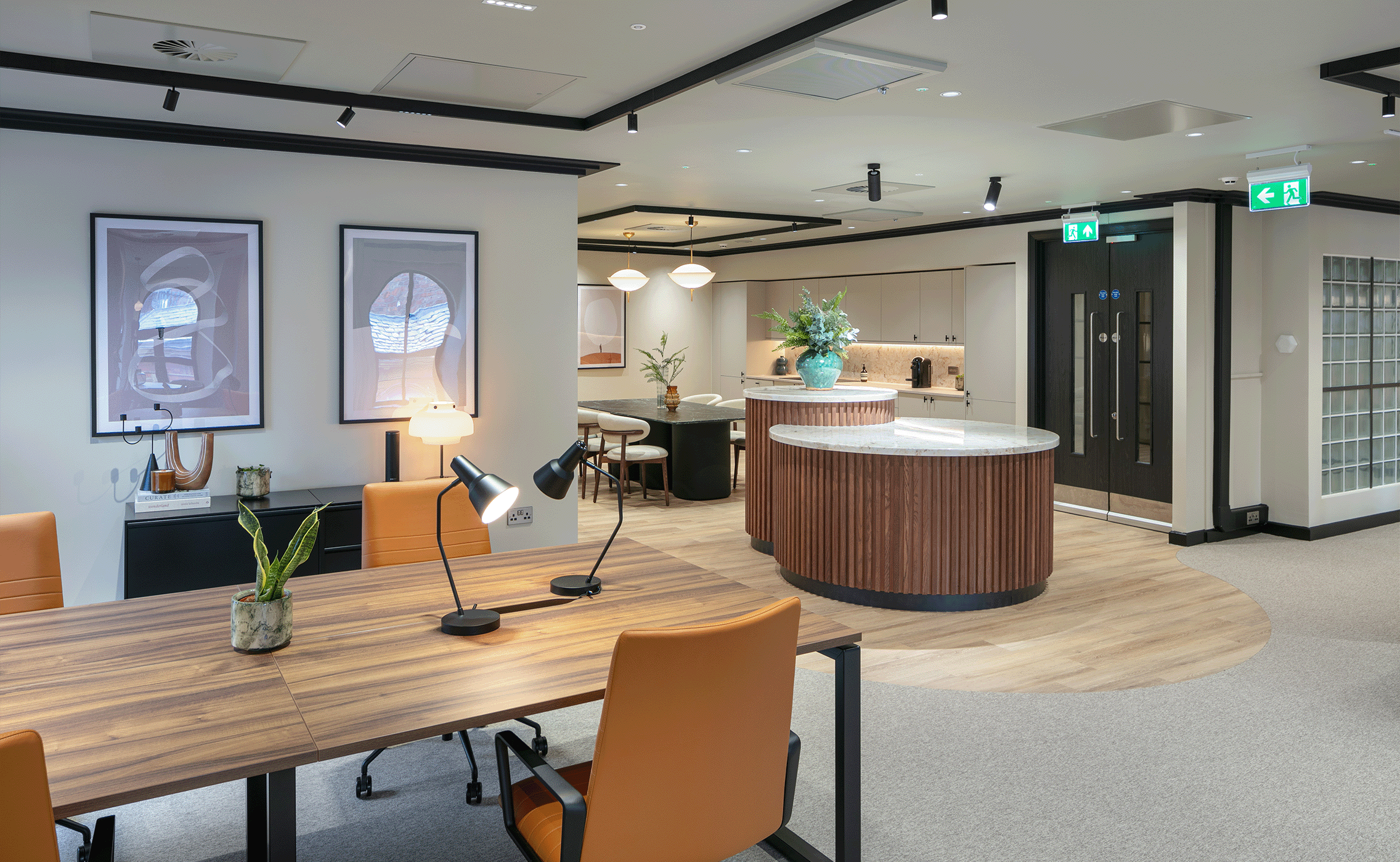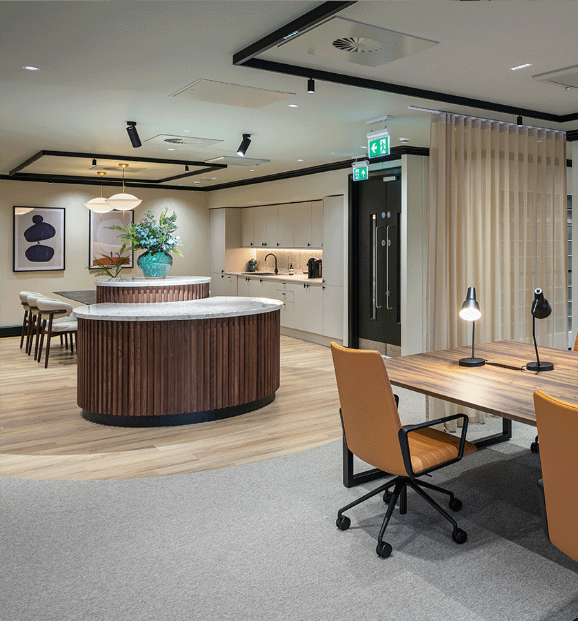 Il concetto di illuminazione è completato dai nostri downlight lineari FUSION FF5, caratterizzati da una distribuzione della luce circolare chiaramente definita con un elevato comfort visivo a un UGR<19.